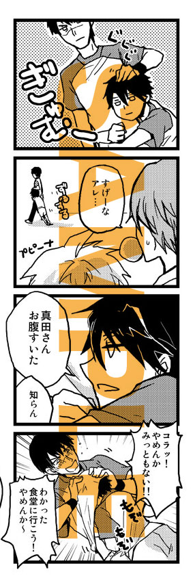 2冊目のサンプルです。 pixiv または追記からどうぞ。 ■12/21追記■ 金額が間違っていました。 (誤)300円→(正)200円です。失礼しました。 [真リョっていいな] B5オフ/16P/200円 真田弦一郎×越前リョーマ 真リョ真。ほのぼのギャグ。 新テニ設定、4コマペラ本。 真リョ/リョ真/真リョ真の3本立てです。 過保護な真田と、甘えんぼう越前が中心。仲良しこよしな2人です --- 2015/1/11 CC大阪100 6号館Cに57a 「DialOff」にて頒布致します。 よろしくお願いします。 PR COMMENTSCOMMENT FORM |